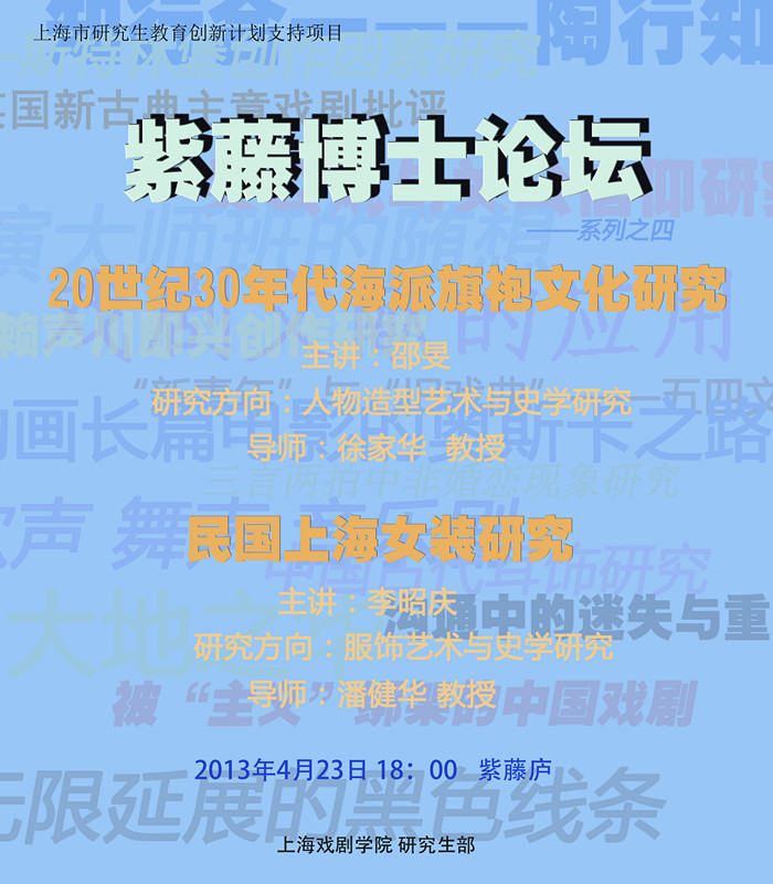 【博士论坛】2013紫藤博士论坛系列四预告:20世纪30年代海派旗袍文化研究&民国上海女装研究
