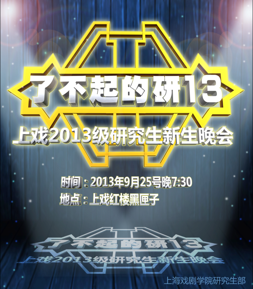 欢迎同学们参加2013级研究生新生晚会。所有参与者获得0.1实践学分,晚会表演者和组织者获得0.2实践学分。