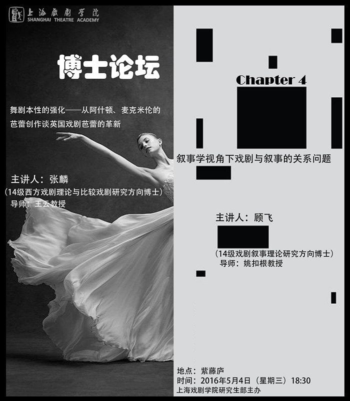大家好!2016“紫藤博士论坛”第四讲将于5月4日(周三)晚6:30在紫藤庐开讲,2015级博士研究生要求参加2/3计6次以上讲座,将计入今后评奖评优等各类活动中。参加论坛硕士同学每次可加0.1实践学分!欢迎各位同学参与!